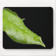 Grünes Magnolienblatt mit Wassertropfen abgeschieden auf schwarzem Hintergrund.