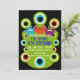 Ein niedliches, hellgrünes Monster mit zwölf Augen und drei weiteren Monstern kündigt ein Monstergeburtstag-Bash-Party auf dieser Party Einladung an. Auf der Rückseite der Einladung steht "Monster Birthday Bash" und die gleichen niedlichen Kreaturen sowie lila, grüne, orangefarbene, schwarze, weiße und aquamarine blaue Streifen und das Alter des Kindes. Passen Sie diese Kindergeburtstag-Party Einladungen an, indem Sie die leere Vorlage einfach ausfüllen. Oder Sie können mit den Schriftart-Farben und -Stilen frei gehen und Dinge bewegen, indem Sie die Schaltfläche "Anpassen" verwenden.