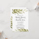 Eine schöne Einladung mit grünen Olivenblättern auf weißem Hintergrund, sowohl vorne als auch hinten. Ideal für Hochzeiten im Frühling, im Freien oder im Grünen.
