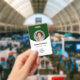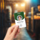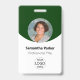 Personalisieren Sie diese vertikalen grünen Abzeichen mit einem Mitarbeiter-Foto, Firmenlogo, Bar-Code, Mitarbeiter-ID und Namen.