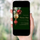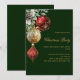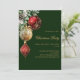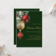 Für ein Weihnachtsfest mit Familie und Freunden. Ein klassischer grüner Hintergrund. Rot und Gold, Grün und Kiefernkegel. Personalisieren und fügen Sie die Details hinzu.