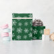 Ein Muster weißer Schneeflocken auf grünem Hintergrund.
