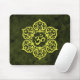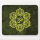 Ein hellgrünes OM entwerfen sitzt nach innen von einer stylised Lotos-Blume. Ein Schatten fällt auf den strukturierten Steinhintergrund, der die Blume macht, scheinen, gerade über die Oberfläche des Musters zu schwimmen. Sechs elegantes Blätter von der Mitte des Entwurfs heraus erreichen, um ein schönes symmetrisches Muster zu schaffen. Dieser stilvolle Yogaentwurf ist eine auffallende Darstellung dieses geistigen Symbols.