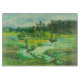 Wasserfarbe auf Seide. О Künstler von Zolotareva. Wasserfarbe auf Seide. Phantastische Landschaft. Schöner Sommertag. Saisonaler Wald Pine Bäume Elegant. Laubwald und Nadelwald.
