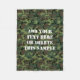 Das Tarnungs-/Camouflagemuster auf dieser Fleecedecke ist in den Schatten des Grüns und des Brauns erfolgt. Es ist ein großer Entwurf für eine Person im Militär, in einem Veteran, in einem Jäger oder in jemand anderem, die ein Tarnungsthema in ihrem Zuhause hat. Wählen Sie Ihre eigene umfassende Größe aus und fügen Sie leicht Ihren Text in einem weißen Schablone-Schriftart - hinzu oder löschen Sie einfach den Schablonentext, um ihn zu verlassen zu löschen.