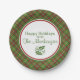 Personalisierter PapierTeller mit einer karierten Grenze in Grünem und in Rotem, mit gelbem Gold und weißen Akzenten. Ein Plaidwerx ursprüngliches Weihnachtskariertes Muster. Wählen Sie von zwei Größen. Zusammenpassende Papierservietten verfügbar.