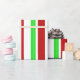 Dieses weihnachtliche Design zeichnet sich durch ein rotes, weißes und grünes Streifen-Muster aus. So etwas kann bei der Vorbereitung von Geschenken zum Geburtstag, zur Hochzeit, zum Jubiläum oder zu einem anderen Ereignis verwendet werden.