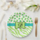 Grünes weißes Zebra-Leopard-Monogramm Pappteller