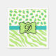 Grünes weißes Zebra-Leopard-Monogramm Serviette
