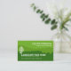 Hinter einem grünen Cover sind Details auf der rechten Seite der Karte. Oben steht ein goldenes Landschaftslogo, gefolgt von Ihrem prestigeträchtigen Namen, den Kontaktdaten und einer Slogan-Beschriftung, um Ihr Unternehmen zu veröffentlichen.