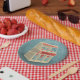 Grunge Retro Jukebox auf schlammigem, blauen Hintergrund.