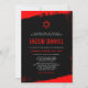 Les invitations Bar Mitzvah rouge et noir cool, qui ne manqueront pas d'impressionner. Polices modernes avec un arrière - plan grunge noir et rouge.