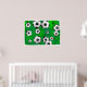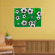 Illustration von vielen Fußballbällen, die vor einem grünen gerippten und texturierten Hintergrund herumrollen. Bilder auf verschiedenen Geschenken und Produkten erhältlich.