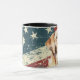 Diese patriotische Tasse zeigt ein Aquarellporträt eines gelben Labrador Retriever Hundes, der vor einem Grunge Hintergrund der US-Flagge platziert wurde. Sie können Text hinzufügen, wenn Sie möchten, indem Sie ihn anpassen.