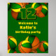 Dieses Basketball-Geburtstagsgeschenk-Begrüßungspposter ist vollständig anpassbar und enthält zufällig arrangierte Basketbälle am oberen und unteren Rand des Posters - jede Basketbälle hat zwei farbige Panels, eine grüne und eine goldene - personalisieren Sie Ihre individuelle Nachricht und das Alter des Kindes oder passen den Text an den Anzug Ihres Events an - der Hintergrund ist grün - von katz_d_d_zynes