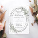Ein weißer Hintergrund. Ein ovales Imitat silberfarbener Rahmen mit schlängelgrüner Vegetation. Personalisieren und fügen Sie Ihre Namen, Details. Schwarzer Text.