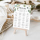 Diese kalligraphische Schrift ist ideal für eine rustikale Hochzeit. Das Design umfasst handgezeichnet botanisch grüne Eukalyptuszweige und Blätter. Dieses Schild kann verwendet werden, um Ihre Gäste alphabetisch oder per Tischnummer zu organisieren. Es bietet Platz für ca. 150 Hochzeitsgäste. Machen Sie Platz für mehr (oder weniger) durch Klicken auf die Schaltfläche Anpassen und erhöhen oder verkleinern Sie die Größe des Schriftartes. Personalisieren Sie dieses Schild mit den Namen der Braut und des Bräutigams und dem Datum.