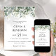 Hochzeitseinladung Design, mit eukalyptusgrün grünen Rahmen, auf weißem Hintergrund, leicht personalisiert.