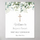 Feiern Sie stilvoll die Erste Heilige Kommunion Ihres Kindes mit unserem individuell gestaltbaren Begrüßungspapier-Zeichen! Mit einem goldfarbenen Kruzifix und zarten Eukalyptus-Blätter auf weißem Hintergrund ist dieses Plakat der perfekte Ort, um Ihre Gäste zu einem besonderen Ereignis Ihres Kindes zu empfangen. Dieses Poster ist für die Personalisierung konzipiert und kann leicht an den Namen, das Datum und andere spezielle Details Ihres Kindes angepasst werden. Und mit unserer Sofortdownload-Option können Sie Ihr Poster in kürzester Zeit in Ihren Händen haben und nach Belieben ausdrucken.