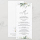 Fügen Sie Ihrer Hochzeitsfeier eine persönliche Touch mit diesen stilvollen und unvergesslichen Party hinzu! Das Design umfasst Eukalyptus-Blätter und Grünpflanzen auf weißem Hintergrund.
