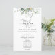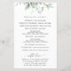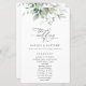 Fügen Sie Ihrer Hochzeitsfeier eine persönliche Touch mit diesen stilvollen und unvergesslichen Party hinzu! Das Design umfasst Eukalyptus-Blätter und Grünpflanzen auf weißem Hintergrund.