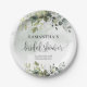 Grünpflanzen und goldene Brautparty-Teller Pappteller