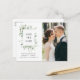 Mit diesem stilvollen Design, das Schriftzeichen mit grünen Eukalyptus-Blättern und ein Foto des Ehepaares enthält, verkünden Sie Ihren Hochzeitstag. Der Text kann zusammen mit dem schönen Bild bearbeitet werden.