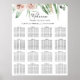 Dieses grün rosa blaue, blumengeschmückte Sitzprogramm eignet sich perfekt für einen einfachen Hochzeitsempfang. Das Design zeichnet sich durch elegante Aquarelltöne, rosa rosa Rosen und grünes Blattwerk aus, das sich perfekt in wunderschöne Bouquets zusammensetzt.