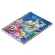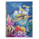 Seidenmalerei einer grünen Meeresschildkröte und Freunde. Kleine Goldfische, Engelfische und andere teilen sich das Meer mit bunten Algen und Korallen. Spaß und hell für Aquarien, Geschenkläden, Geschenke und Karten.