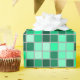 Dieses Ausrüstungsbeschreibungen ein Muster mit einem Gitter der Quadrat-förmigen Fliesen färbten verschiedene Schatten von Grünem und von aquamarinem.