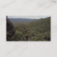 Blick auf ein Tal mit großen immergrünen Bäumen von einem Blick. Wald im Tal gegen den klaren Himmel