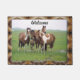 Eine Gruppe von fünf Appaloosa braunen und weißen Pferden, die in einem grünen Feld stehend sind.Mit einem Babykalter.Diese Bodenmatte hat einen abstrakten Rahmen. Die Text- und Textfarbe kann in jede Farbe geändert werden, die Sie mit dem benutzerdefinierten Tag gewollt haben.