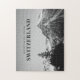 Grüße aus dem Schweizer Schwarz-Weiß-Foto aus den Schweizer Alpen. Schwieriges Puzzle mit Puzzle.