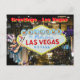 Las Vegas Postcard mit Showgirl-Kunst mit Vintagem Federkopfteil und dem berühmten Willkommensschild, das einen bunten Wunsch, den Sie hier waren, oder "Gruß von Las Vegas"-Karte schafft.