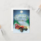 Der Weihnachtsmann fährt nachts mit Geschenken durch den Winterwald einen Jahrgangswagen