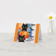 Auf dieser Halloween-Grußkarte sind niedliche, schwarze Katzen, Kürbisse und fliegende Fledermäuse zu sehen. An der Kartenvorderseite steht: "Happy Halloween" und drinnen liest sich: " Bitte schreien Sie nicht, denn die Dinge sind nicht so beängstigend, wie sie scheinen. Aber haben Sie ein glückliches Halloween!" Eine süße Karte, um ein Kind zu Halloween zu schicken!