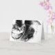 Eine Grußkarte mit einem nahen Schwarzweiß-Foto einer wachsamen Katze. Bleiben Sie drinnen für Ihre eigene Nachricht.