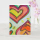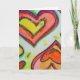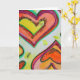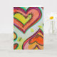 Gelbe, pfirsichfarbene und orangefarbene Herzen bilden zwei konzentrische Herzen, die sich gegenseitig kippen. Hellgelbe Farbpunkte sind wie Konfetti zwischen den Herzen. Die Aquarellmalerei hat oben eine leichte Goldschicht und rosa. Personalisieren Sie diese Karte mit Ihrem eigenen Text und Bildern mit der Option Anpassen. Detail aus dem Inspirationswort "Lachen" Gemälde.