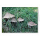 Vier Söhne, beige Pilzhüte im Gras sind auf dieser Grusskarte. Die ist Deco.