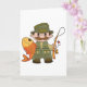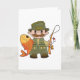 Liebe angeln dann werden Sie dieses Design Liebe. Es ist ein Angler mit einem Fisch, den er gefangen hat. Geschehen in einem lustigen Karikaturenstil. Der Angler ist in seinem Fanggerät gekleidet und hat einen orangefarbenen Fisch in der einen Hand und seine Angelstange in der anderen. Dieses Angeller-Design sieht auf diesen Grußkarten großartig aus