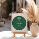 A Wi-Fi symbol. Add your wi-fi name and password for your customers/guests. Emerald green background, white text.