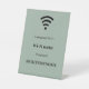 A Wi-Fi symbol. Add your wi-fi name and password for your customers/guests. Sage green background.