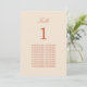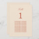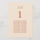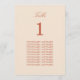 Guest Names Terracotta Script Table Card, leicht zu personalisieren in der Online-Personalisierungsvorlage, um die Tischnummer für die entsprechende Tabelle und die Gastnamen für diese Tabelle anzuzeigen. Das Design kopiert sich automatisch auf die andere Seite der Karte, um den Gästen zu helfen, ihren Tisch von beiden Seiten des Tisches zu finden. Diese schlicht minimalistische, stilvolle Tischkarte bietet Platz um die Textelemente und ermöglicht so die Wahl der Anzeigemethoden wie das Aufhängen oder Framing der Karte.