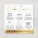 Carte de soin de gâteau tendance avec police de script moderne en faux or et icônes de soins de gâteau. Ce luxueux effet de feuille d'or et les cartes d'instructions de soin de gâteau mariage blanc comprennent les instructions de transport et de stockage de gâteau les plus importantes, ainsi que l'espace pour votre logo et les détails d'affaires sur le dos. L'ajout parfait à votre conception d'emballage de boulangerie. Peut être utilisé comme guide d'instructions pour les gâteaux mariages, les gâteaux à plusieurs niveaux et les gâteaux d'anniversaire.