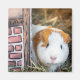 Niedliches Weiß- und Orangenschwein, das aus dem Haus schaut,