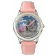 Kinderuhr aus Edelstahl mit rosa Lederarmband