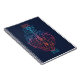 Dieses Notizbuch-Design feiert die Liebe von Musik und Gitarre. Es hat eine vereinfachende Illustration einer Electro-Gitarre umgeben von einem großen Neonherz und musikalischen Noten.