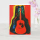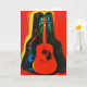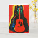 Mon oeuvre originale avec ma photographie originale d'une guitare acoustique reposant dans un coque recouvert de velours, stylisé avec une technique d'affiche colorée pour une apparence artistique est sur cette carte cool. La carte est vide à l'intérieur, vous pouvez donc écrire vos lettres et notes personnelles.