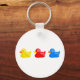 Niedliche Cartoon-Abbildung von drei verschiedenen farbigen Enten, die in einer Reihe zusammenschweben. Bilder auf verschiedenen Geschenken und Produkten erhältlich.