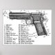 Ein Vintage-Bild eines Schussdiagramms für eine halbautomatische 45 Kaliber Handpistole.